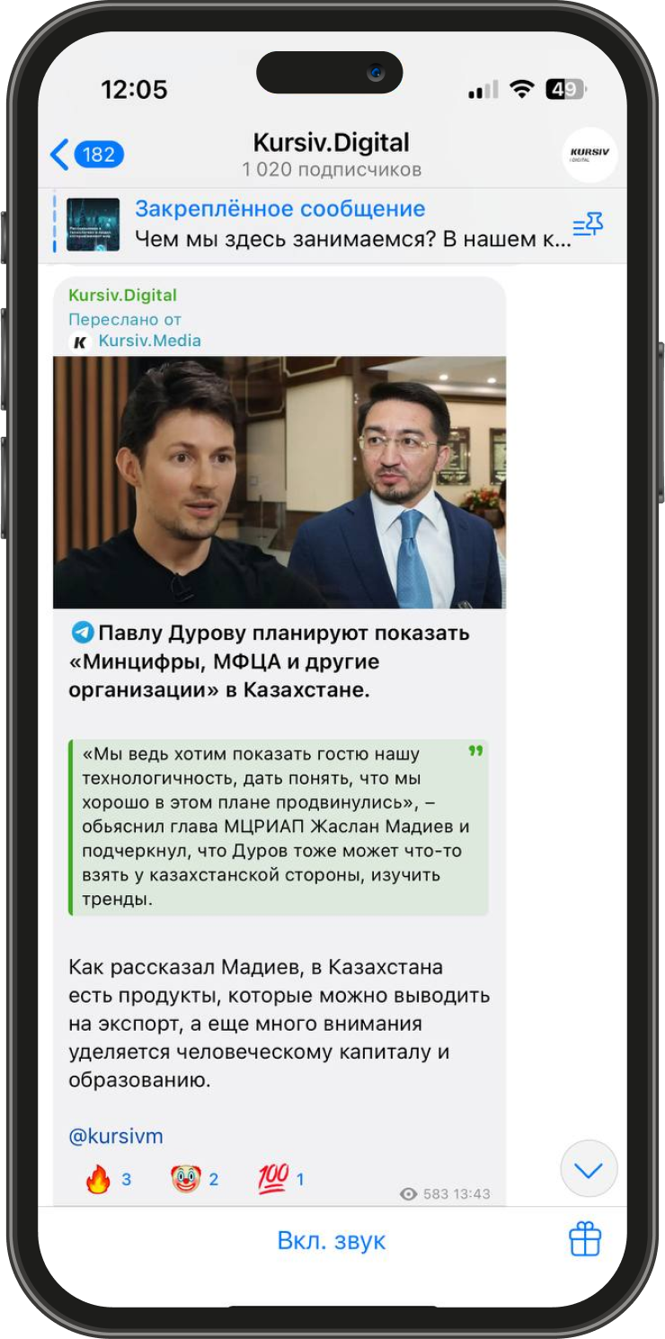 Создать Telegram-канал об IT-технологиях в Казахстане с профессиональной экспертизой. Сформировать локальную IT-повестку, объединить сообщество специалистов и отразить роль Казахстана в технологическом прогрессе Центральной Азии.
