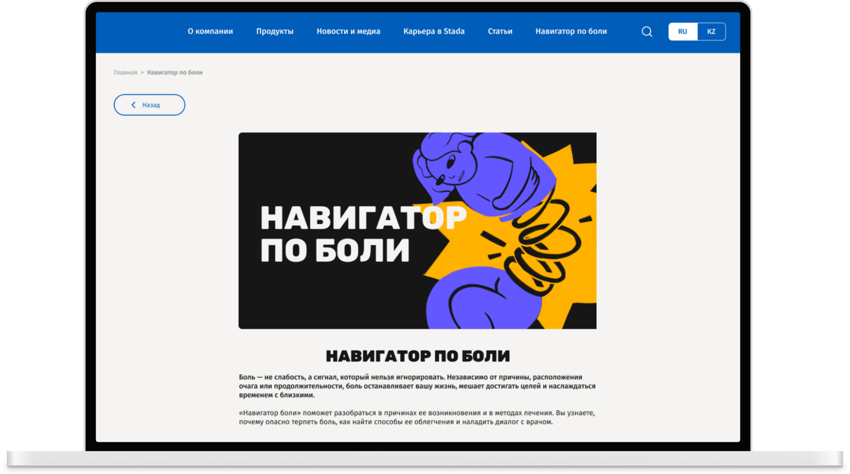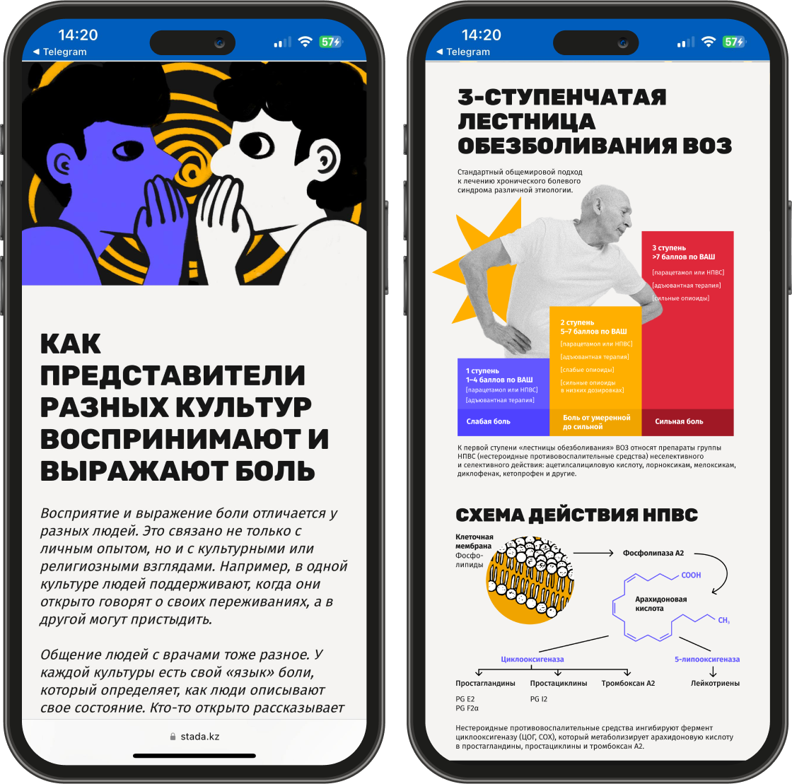 Создать контентный проект под препарат, купирующий болевой синдром. Проект должен одновременно работать на две цели: